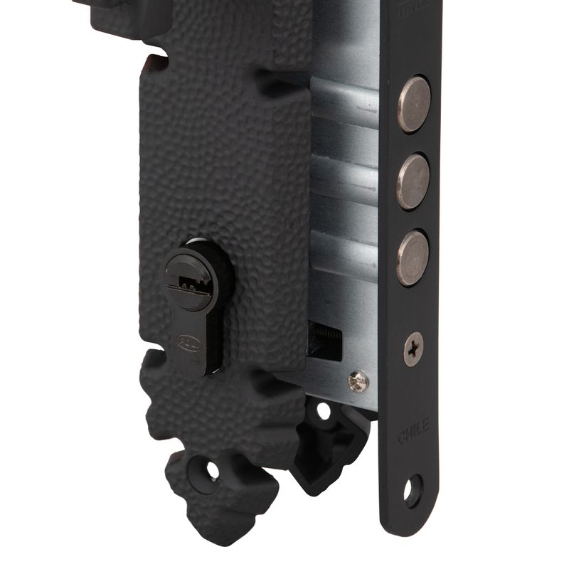 - Manillas: Reversibles, manilla por ambos lados con placa