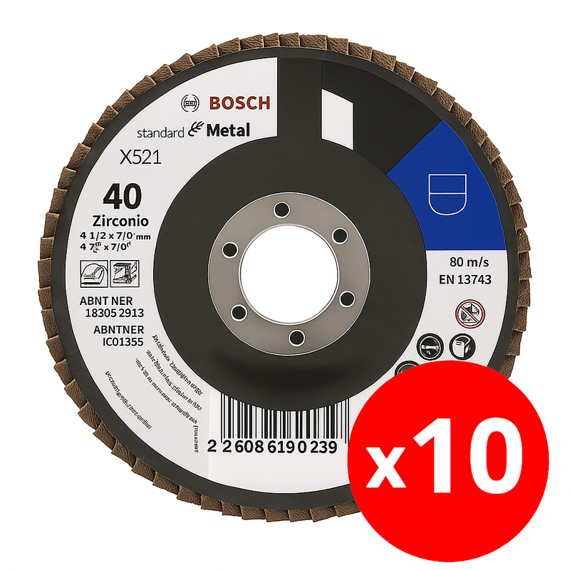 Estos discos flap cuentan con aletas abrasivas dispuestas en forma de abanico que permiten un desgaste progresivo y mayor durabilidad. El grano 40 proporciona una remoción agresiva de material, útil para trabajos iniciales de preparación o limpieza de metales. Compatibles con esmeriladoras angulares de 4 1/2".