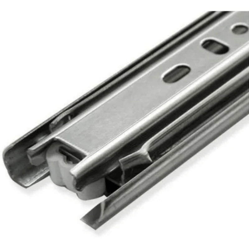 Esta corredera telescópica de 400mm proporciona un deslizamiento fluido y resistente, gracias a su construcción en zinc. Su acabado plateado ofrece buena resistencia a la corrosión y un aspecto limpio. Se utiliza comúnmente en muebles, gabinetes y cajones de uso doméstico o comercial.