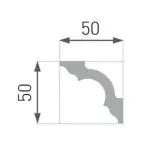 Esta moldura de cornisa E14 está diseñada para embellecer las uniones entre paredes y techos. Con un perfil de 50x50 mm, su formato de 2 metros por unidad y presentación en caja de 72 piezas permite cubrir grandes superficies con eficiencia. Fabricada para instalación en interiores.