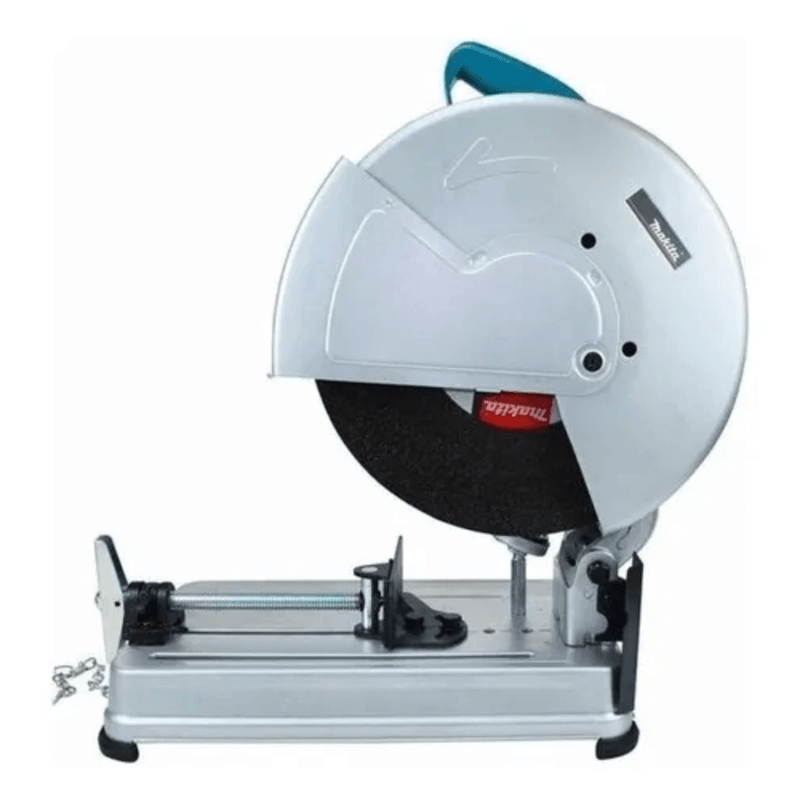 Tronzadora portátil Makita modelo 2414NBE de 14″ (355 mm) con motor de 2 000 W y alta velocidad, diseñada para cortes seguros y eficientes en metales como tubos, perfiles y barras.