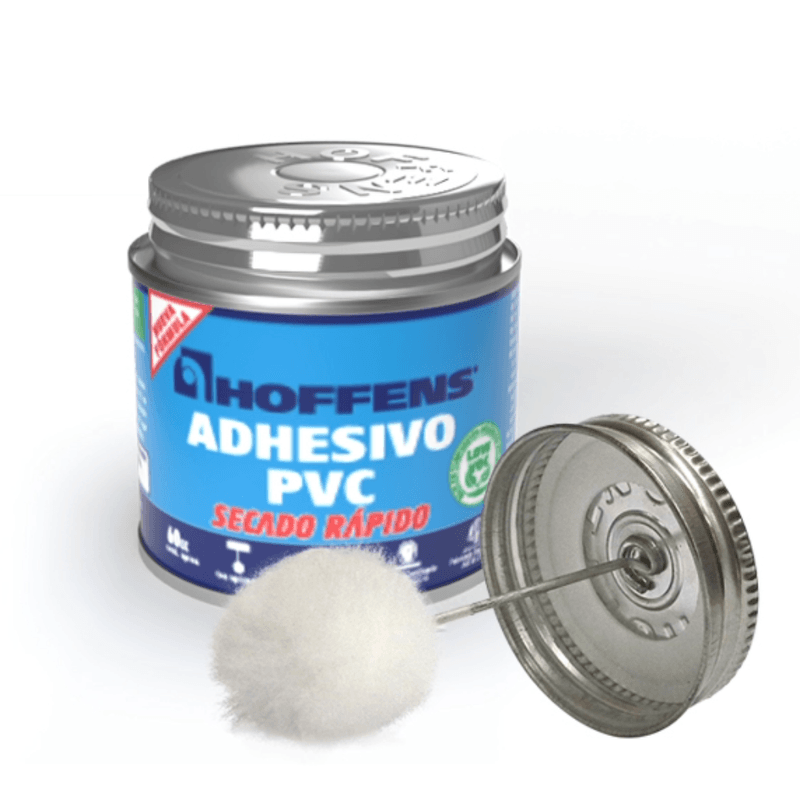 El adhesivo PVC Hoffens de 60 cc secado rápido en lata con aplicador está formulado para asegurar uniones resistentes y duraderas en tuberías y accesorios de PVC. Su rápida acción de secado permite optimizar el tiempo de instalación, mientras que el aplicador integrado facilita una aplicación uniforme y precisa.