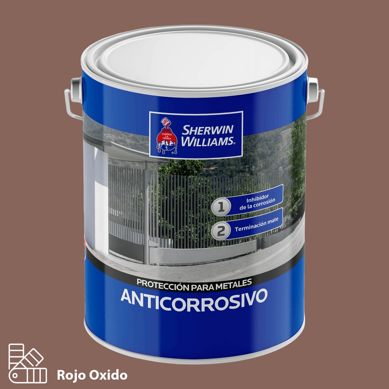 El anticorrosivo Sherwin Williams color rojo óxido código A04900P314035 es un recubrimiento protector formulado para prevenir la corrosión en superficies metálicas. Su excelente adherencia y poder cubriente garantizan una base duradera para acabados posteriores, protegiendo el metal contra la humedad, el óxido y la intemperie. Ideal para aplicaciones industriales, estructurales y domésticas donde se requiera máxima protección.
