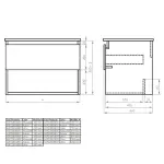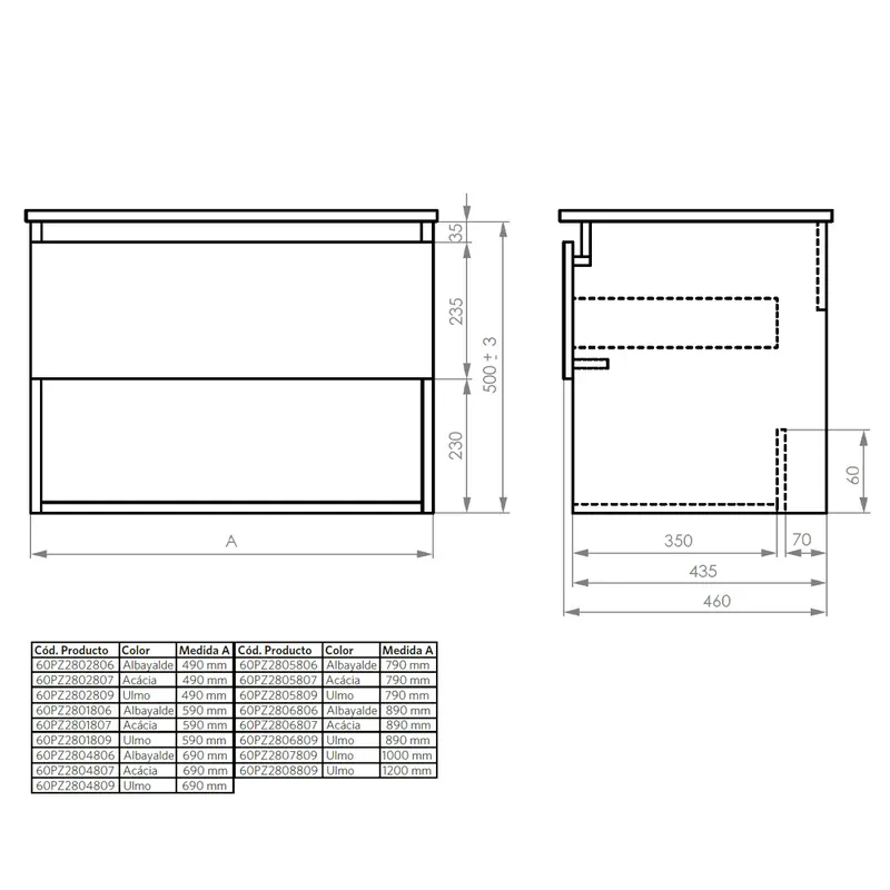 Su estructura modular con cierre suave y cantos sellados proporciona durabilidad y una estética moderna, siendo compatible con cubiertas de vanitorio del mismo ancho de la línea Zoé.