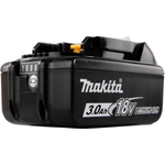 Batería Makita LXT® modelo BL1830B (referencia 632G12-3), de 18 V y capacidad de 3.0 Ah, con indicador de nivel de carga integrado y diseño robusto para alto rendimiento en herramientas inalámbricas.