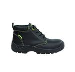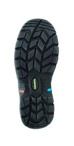 Calzado de seguridad anticlavo alaska, fabricado en cuero estampado color negro. Entre suela de poliuretano de baja densidad y buen aislamiento térmico. Planta de poliuretano de alta densidad, aislante eléctrico y resistente a los hidrocarburos. Puntera y plantilla antiperforante de acero y pasacordones de policarbonato.