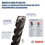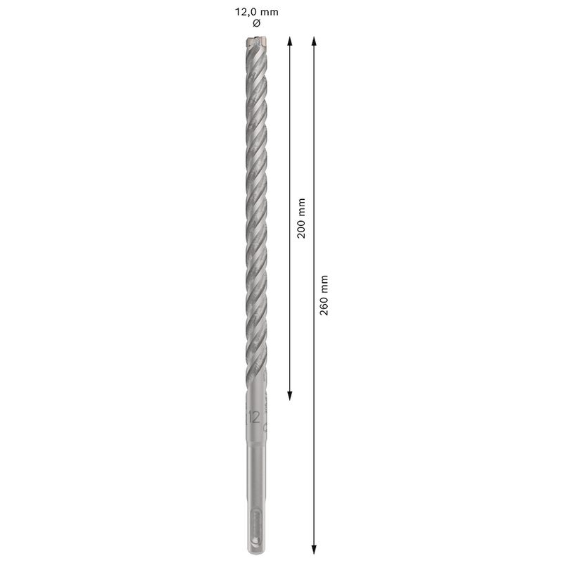 Broca Bosch PRO SDS‑Plus 5X de 12 mm con longitud de trabajo de 200 mm y longitud total de 260 mm, diseñada para perforaciones en concreto armado, mampostería y hormigón con alta eficiencia y durabilidad.
