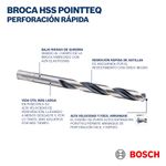 Broca Bosch HSS-PointTeQ de 13,0 mm (unidad individual), diseñada para perforaciones precisas y eficientes en metales, con punta autocentrante que facilita el inicio sin desviación.
