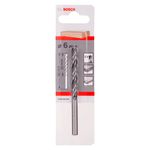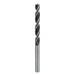 Broca Bosch cilíndrica para madera de 6 mm, con punta centradora (brad-point) y dos canales helicoidales, ideal para perforaciones limpias y precisas en madera dura, blanda y tableros laminados.