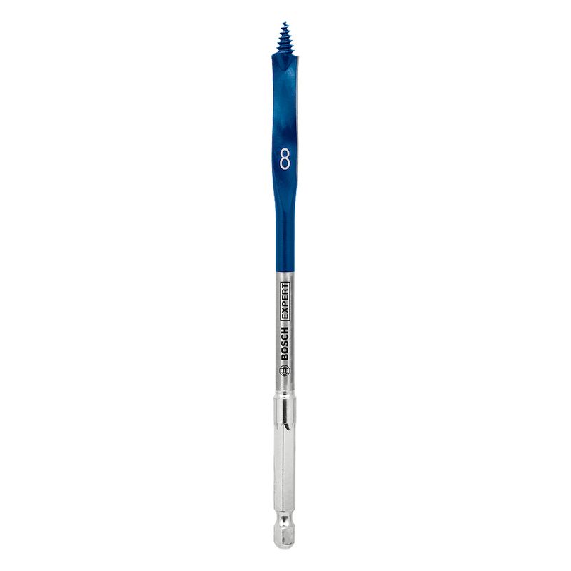Broca Bosch SelfCut Speed paleta de 8 mm con vástago hexagonal de ¼″ y punta autorroscante, diseñada para perforar madera con gran rapidez y limpieza gracias a su tecnología optimizada.