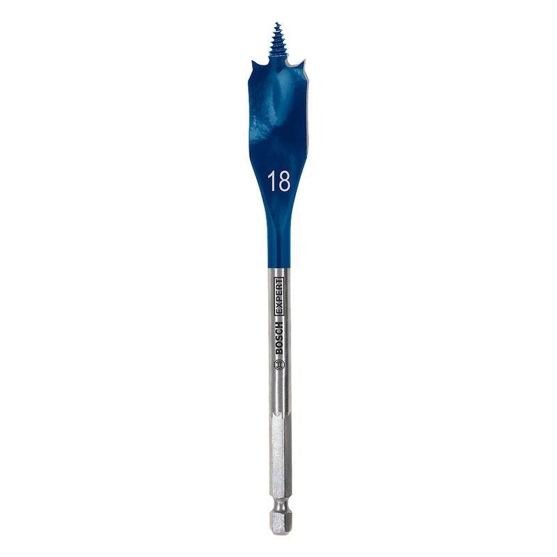 Broca paleta Bosch SelfCut Speed de 18 mm, presentada en la línea Expert, diseñada para perforación rápida en madera mediante punta roscada autoalimentada.