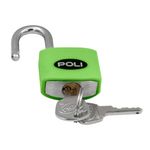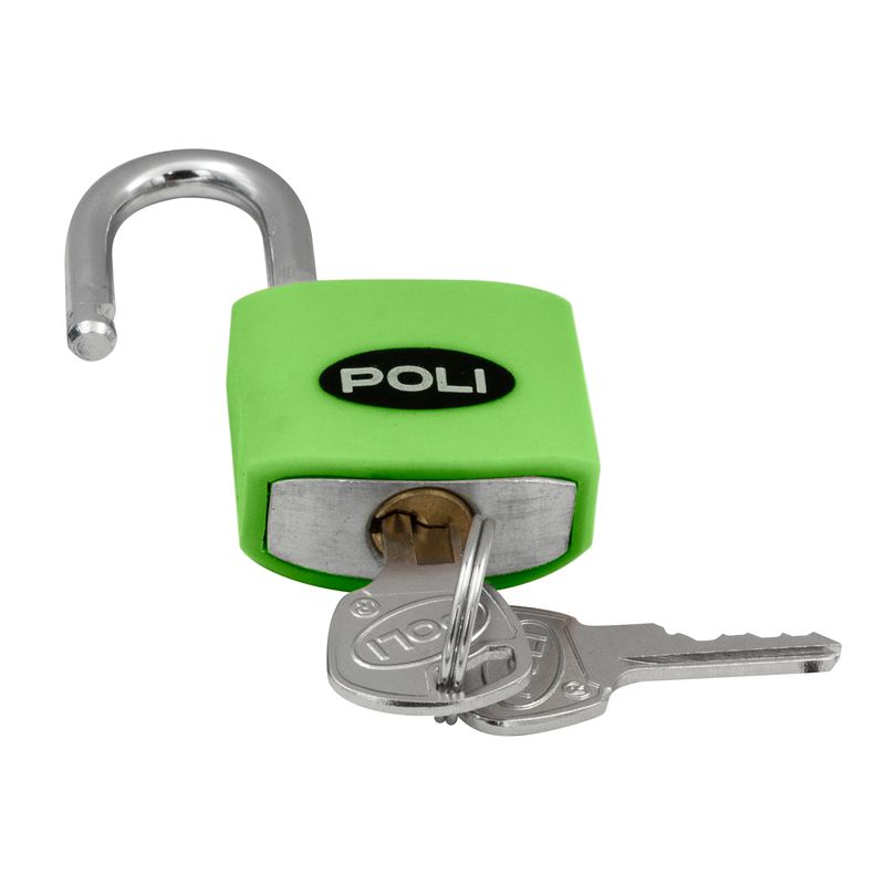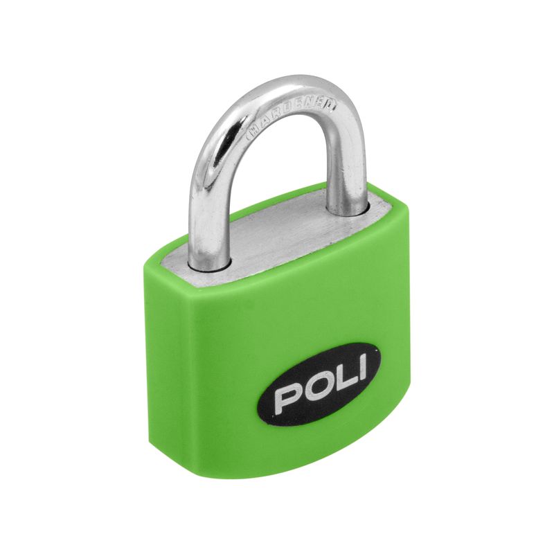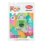 El candado POLI POP de 32 mm en color verde es una alternativa liviana y funcional para asegurar objetos personales. Su cuerpo de aluminio con recubrimiento plástico y gancho de acero cromado proporciona un uso simple y seguro en aplicaciones no exigentes.