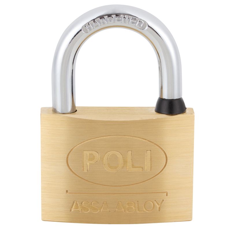 El candado Serie 100 Poli de 60 mm en bronce macizo satinado está orientado a aplicaciones que demandan un cuerpo de mayor tamaño y resistencia, entregando un nivel superior de robustez para cierres expuestos y de uso intensivo.