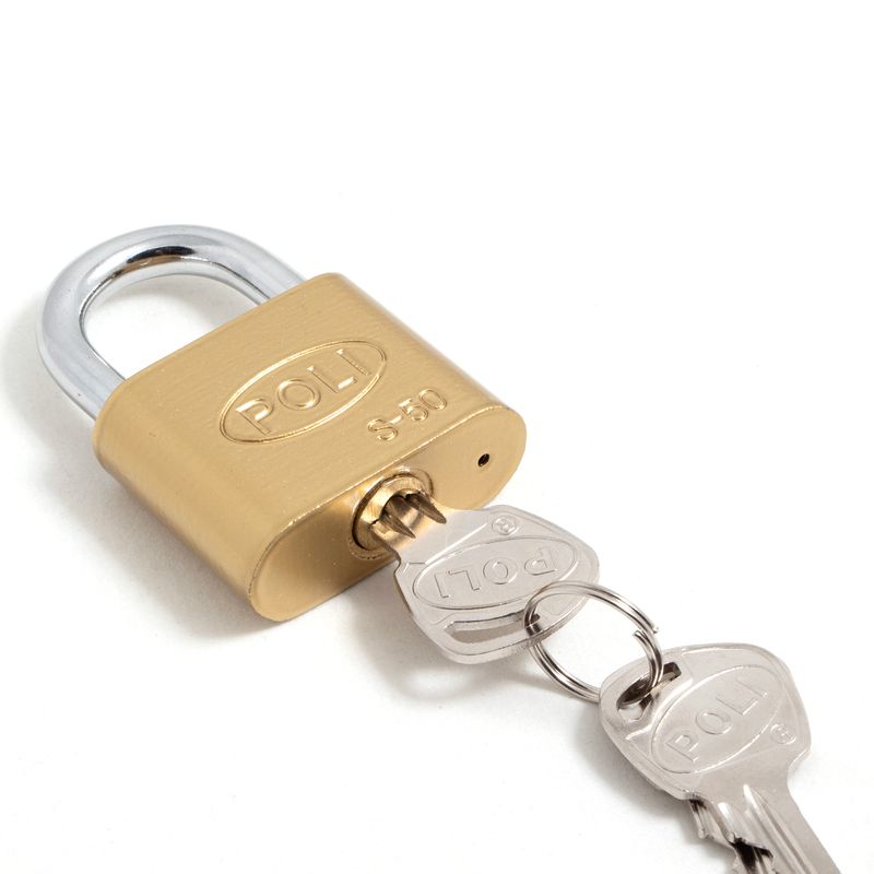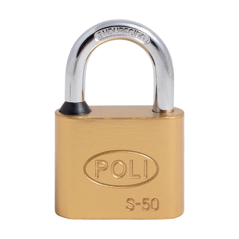 El candado Poli Serie S de 50 mm en terminación bronce ofrece una solución robusta para aplicaciones exteriores, combinando un cuerpo de fierro resistente con un sistema de cierre confiable mediante pines.