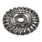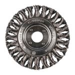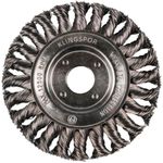 Esta grata plana Klingspor BR 600 Z trenzada en acero de 115 mm de diámetro x 14 mm de ancho, con rosca M14, está diseñada para el desbaste agresivo, eliminación de óxido, costras de soldadura y limpieza profunda en superficies metálicas.