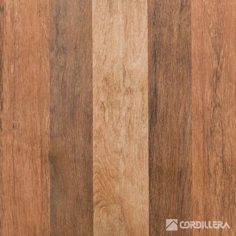 La cerámica Cordillera Castaño Mix 45x45 cm (código ICATMCP14KX) presenta un diseño tipo parquet en tonos cálidos, ideal para lograr un estilo natural y acogedor. Su acabado mate antideslizante y resistencia al tránsito medio la hacen perfecta para pisos interiores en cocinas, salas y comedores.