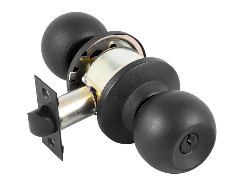 Cerradura cilíndrica pensada para puertas de oficina y dormitorio, que permite cierre con llave exterior y operación interior sencilla.