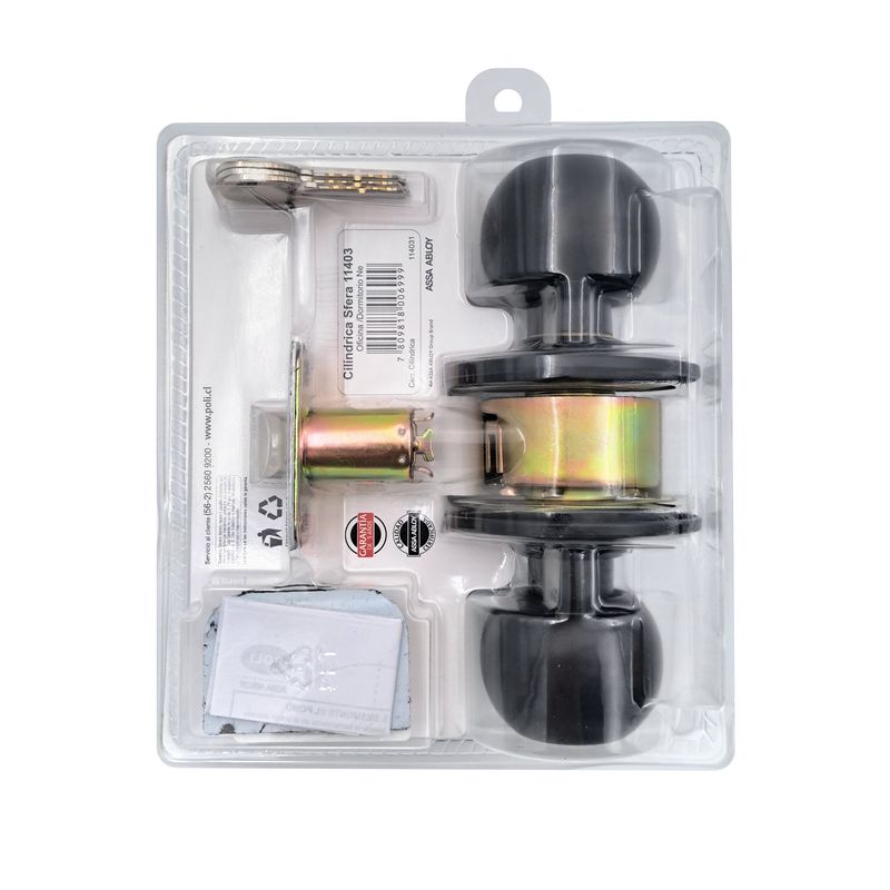 Cerradura cilíndrica pensada para puertas de oficina y dormitorio, que ofrece cierre seguro con llave exterior y operación interior mediante botón.