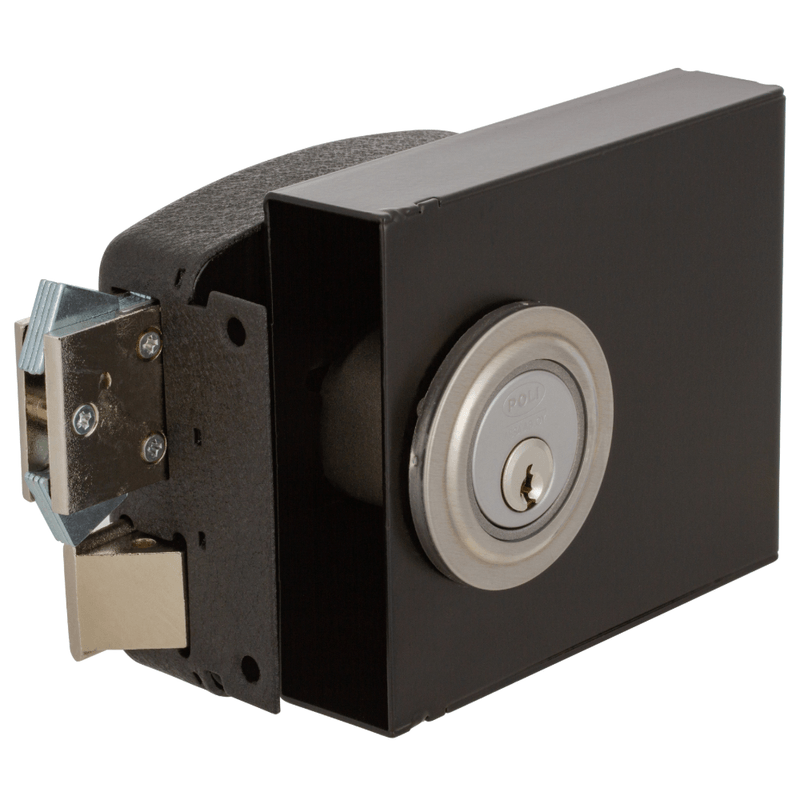 Cerradura de sobreponer mecánica Poli Security Pro diseñada para rejas correderas y abatibles, orientada a reforzar la seguridad en accesos metálicos. Incorpora sistema antipalanca con tirador integrado y diseño sin tornillos a la vista.