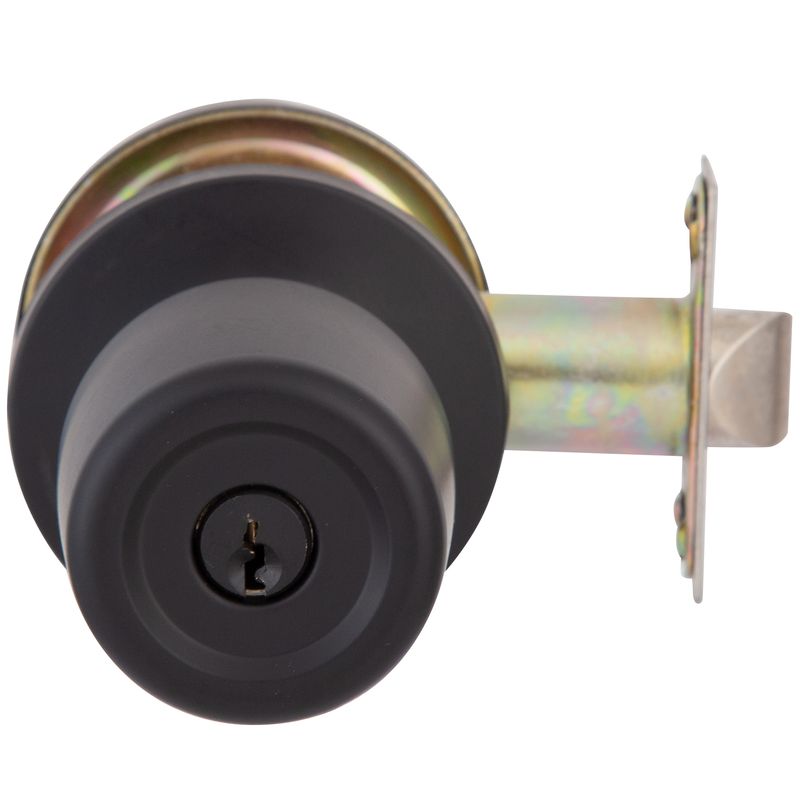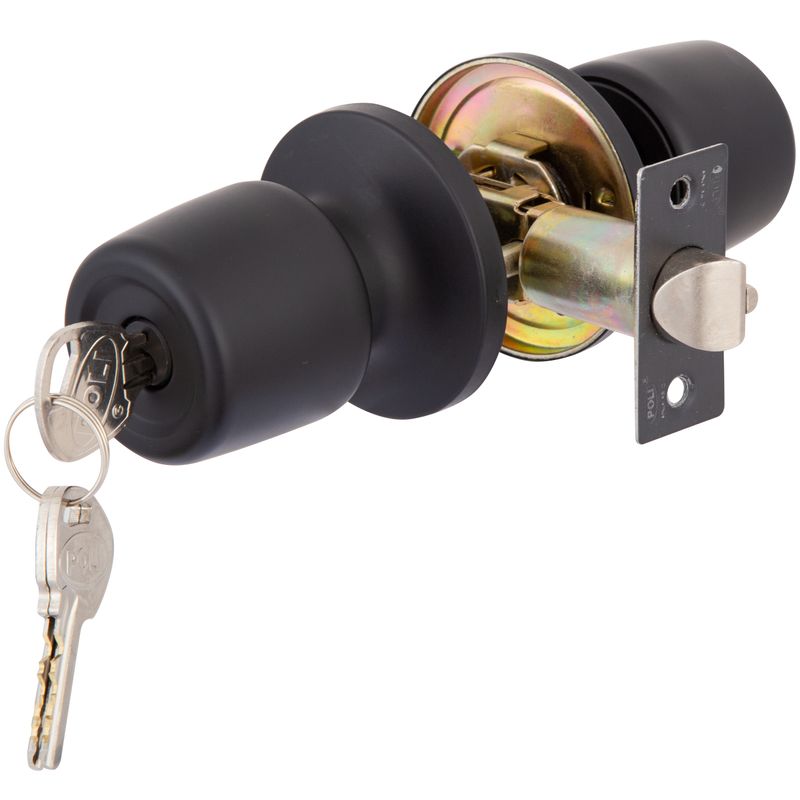 Cerradura tubular Poli línea 8000 diseñada para puertas de acceso principal. Incorpora pomo exterior fijo con llave y interior libre, ofreciendo un cierre funcional y seguro para uso residencial.