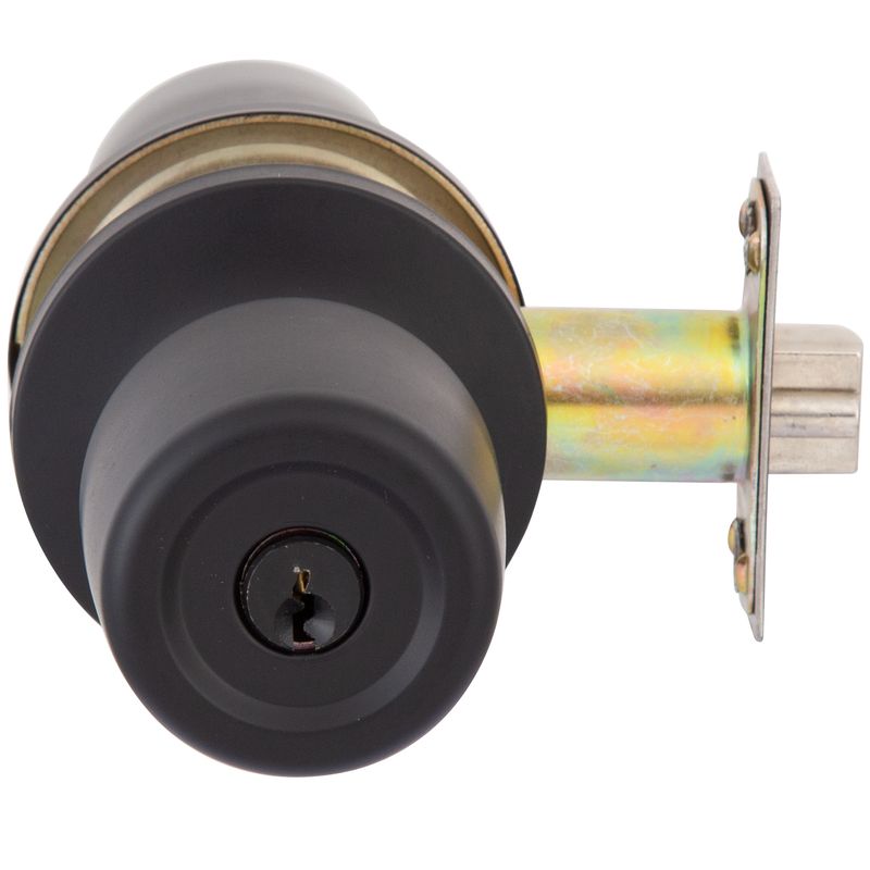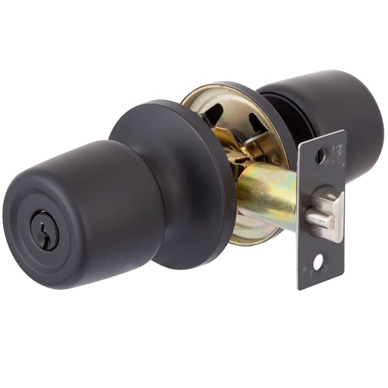 Cerradura tubular Poli línea 8000 diseñada para oficinas y dormitorios, que combina control de acceso con privacidad. Incorpora pomo exterior con llave y pomo interior con perilla de seguridad para un uso cómodo y confiable.