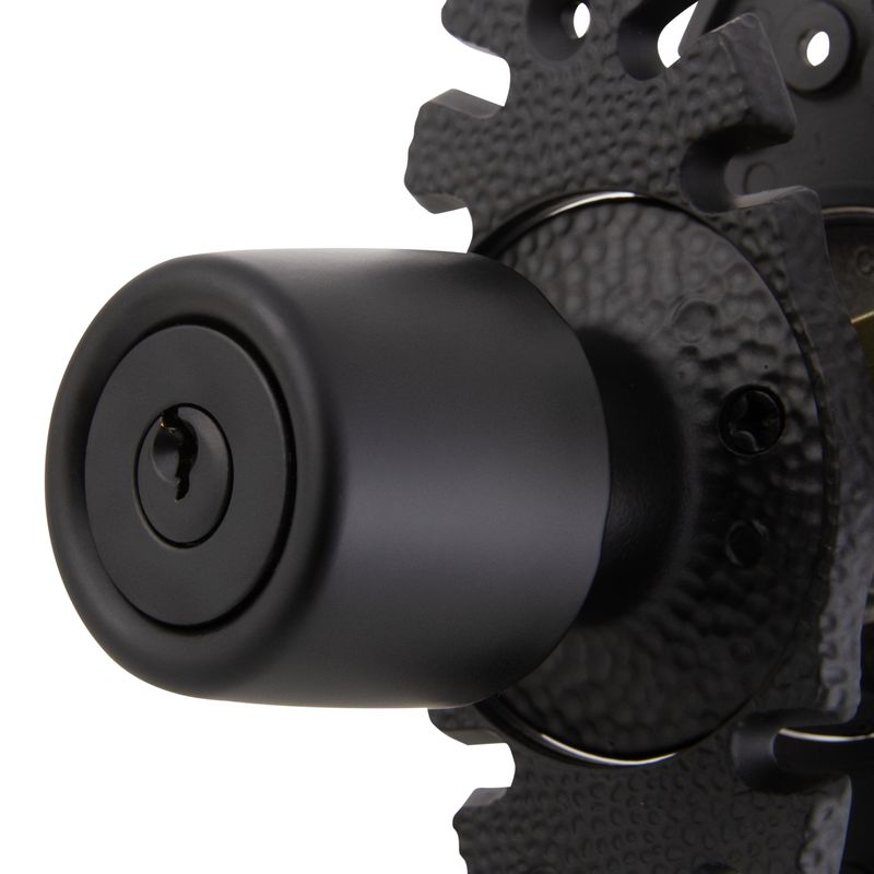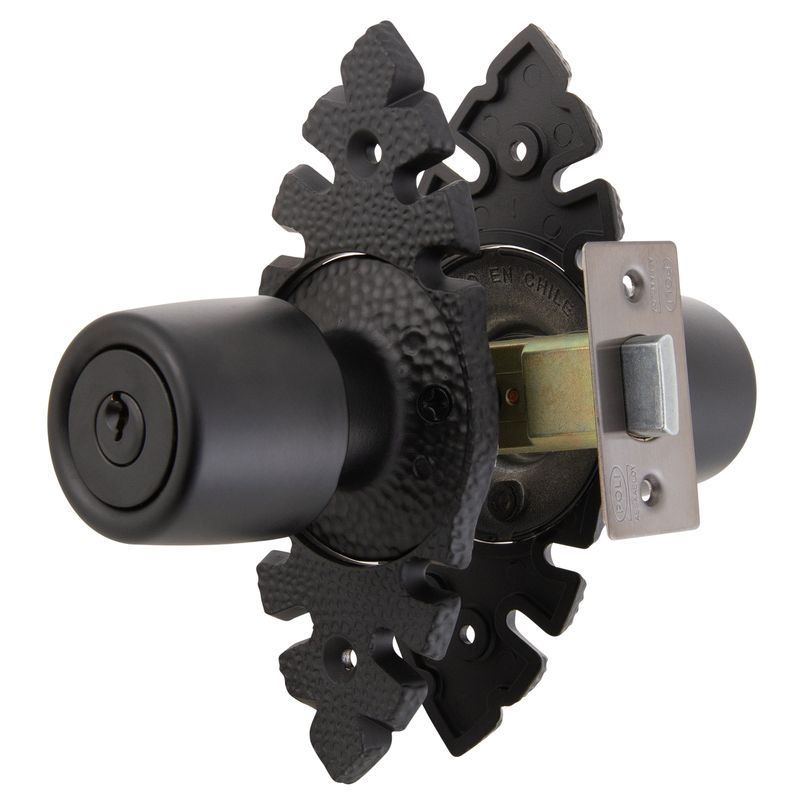 Cerradura tubular Poli Pomo Urbano diseñada para oficinas y dormitorios, con estética rústica y funcionamiento seguro. Incorpora pomo exterior con llave y pomo interior con perilla, permitiendo un control práctico del acceso y la privacidad.
