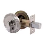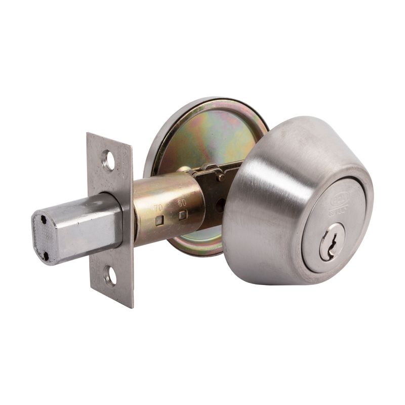 Cerrojo auxiliar simple Poli, diseñado como sistema de seguridad adicional para puertas. Permite control de acceso mediante llave desde el exterior y perilla desde el interior, con instalación estándar backset 60 mm.