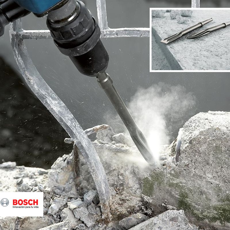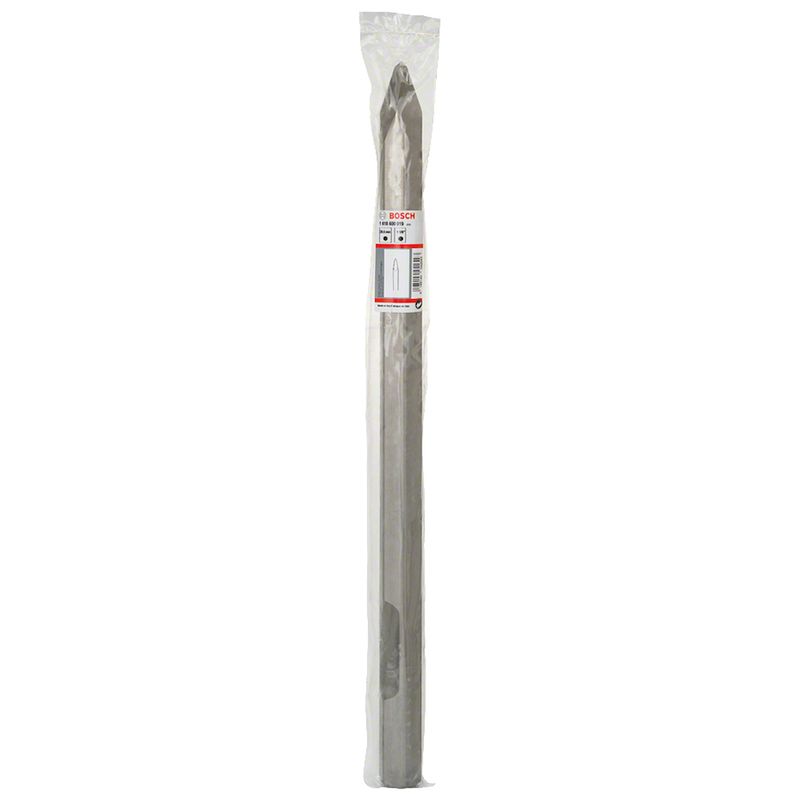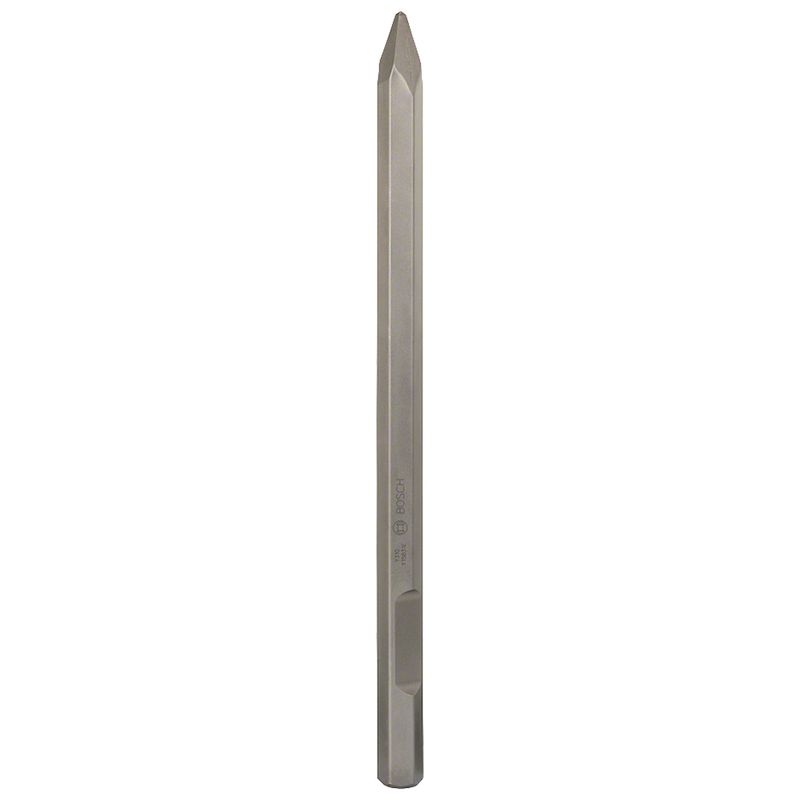 Cincel Bosch de punta o punteador con vástago hexagonal de 28 mm, longitud total de 520 mm, diseñado para demolición, ajuste y extracción en concreto, ladrillo y mampostería.