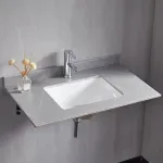 Su superficie de porcelanato aporta resistencia y fácil mantenimiento, mientras su diseño integrado optimiza el espacio y añade un estilo contemporáneo al baño.