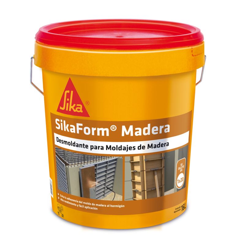 El Desmoldante para Madera SikaForm Madera Tineta 16 L Sika (código 167972) es un agente desmoldante formulado a base de aceites minerales que, al mezclarse con agua, genera una emulsión de fácil aplicación. Su función principal es evitar la adherencia del hormigón o lechada al moldaje de madera, mejorando la calidad de la terminación y prolongando la vida útil de los encofrados.