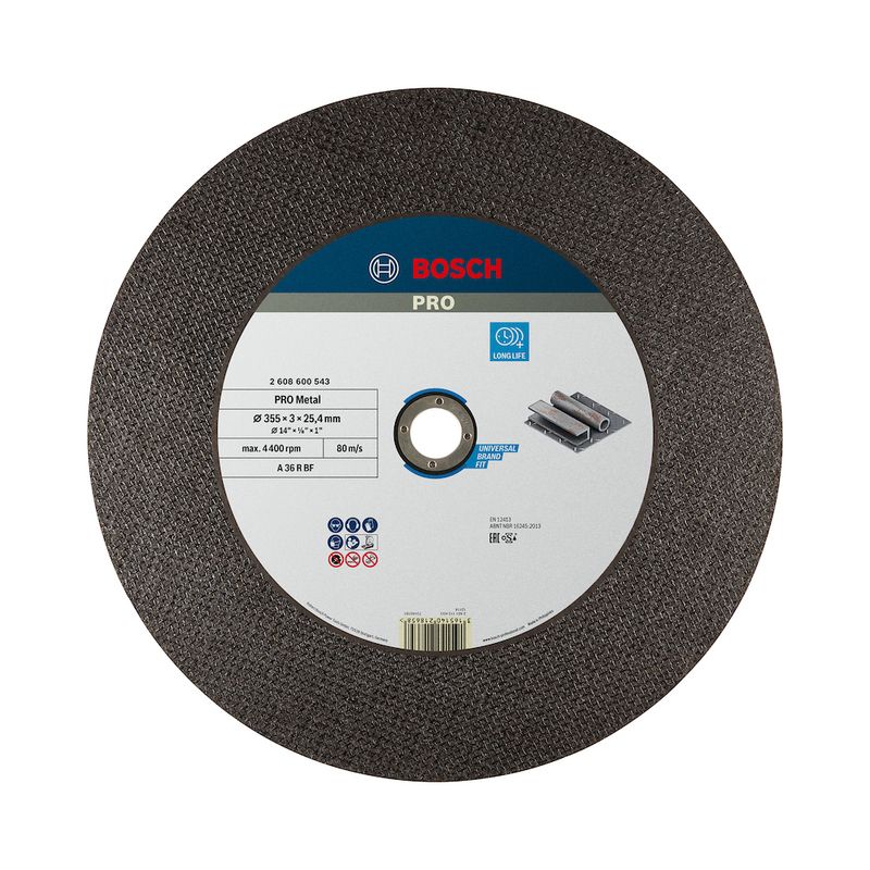 Disco de corte Bosch Expert for Metal de 14″ ideal para tronzadoras, ofrece alta durabilidad, corte limpio y máxima seguridad en entornos profesionales.
