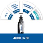 Herramienta rotativa Dremel 4000 kit 3/36: alto desempeño con control de velocidad totalmente variable y tapa EZ Twist para cambios rápidos de accesorios. Ideal para trabajos de precisión en múltiples materiales.