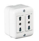 Enchufe doble sin placa de 10-16A en color blanco, diseñado para proporcionar una solución eficiente y segura en instalaciones eléctricas. Ideal para conectar múltiples dispositivos en un solo punto de corriente.