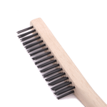 La escobilla de alambre de acero Hela 4-C con mango está pensada para limpieza y preparación de superficies metálicas ferrosas. Incorpora alambre de acero templado y mango anatómico de madera fresada, libre de astillas, con anclaje reforzado de los mechones al cuerpo.