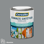 Esmalte sintético Ceresita Cereluxe color Aluminio, código 10314304, en presentación de 1 litro (LT). Esmalte alquídico de alta resistencia, formulado para proteger y decorar superficies metálicas y de madera, otorgando excelente adherencia, durabilidad y brillo metálico uniforme.