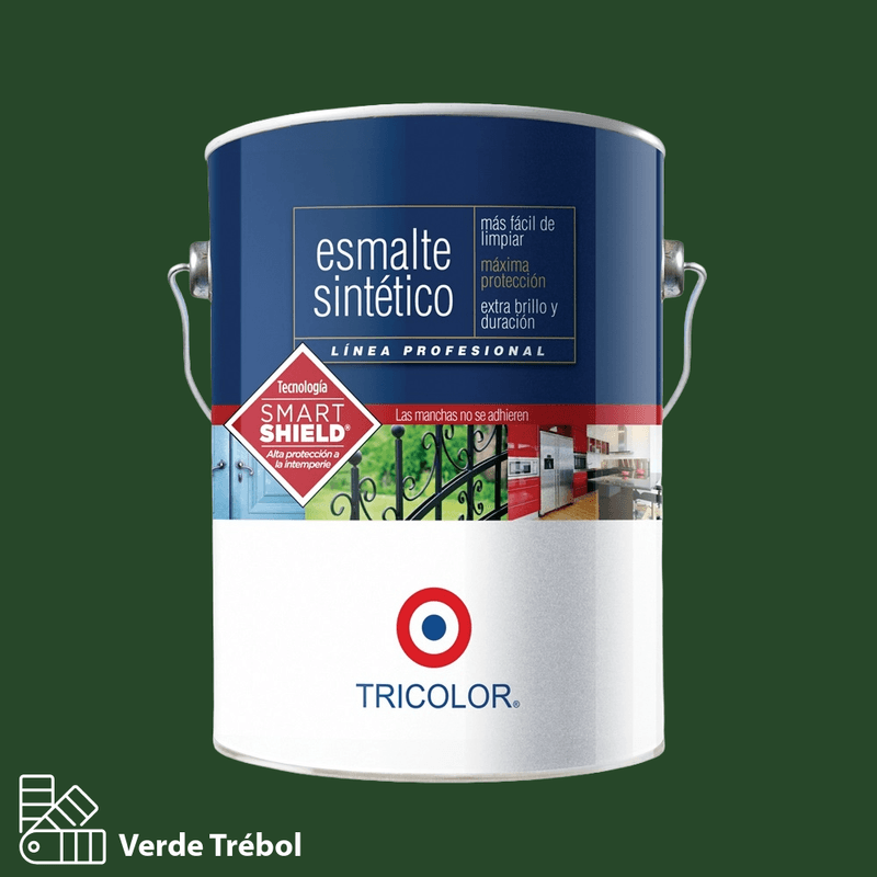 El esmalte sintético Tricolor en color Verde Trébol ofrece un acabado brillante, uniforme y de gran resistencia, ideal para proteger y decorar superficies metálicas, de madera o yeso. Su fórmula a base de resinas sintéticas de alta calidad garantiza una excelente adherencia, cubrimiento homogéneo y durabilidad prolongada tanto en interiores como en exteriores.