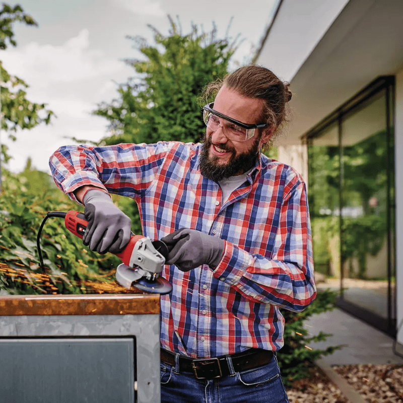 El esmeril angular Einhell TC-AG 115/750 de 115 mm (4 ½") y 750 W es una herramienta robusta para tareas de corte, desbaste y eliminación de óxido. Cuenta con protector de disco para mayor seguridad, bloqueo de husillo para cambios rápidos, engranaje metálico resistente, protección contra reinicio tras cortes de corriente, y empuñadura adicional montable en dos posiciones. Se entrega sin disco de corte.