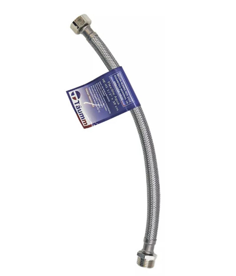 El Flexible de Acero Inoxidable HI-HE 1/2" 30 cm Taumm es un tubo flexible diseñado para conectar de manera segura y eficiente el suministro de agua a artefactos sanitarios como lavatorios, lavaplatos y lavaderos. Con una longitud de 30 cm y un diámetro de 1/2 pulgada, ofrece una conexión práctica y confiable. Fabricado con materiales de alta calidad, es duradero y resistente a la corrosión. Este flexible es ideal para aplicaciones en baños y cocinas.