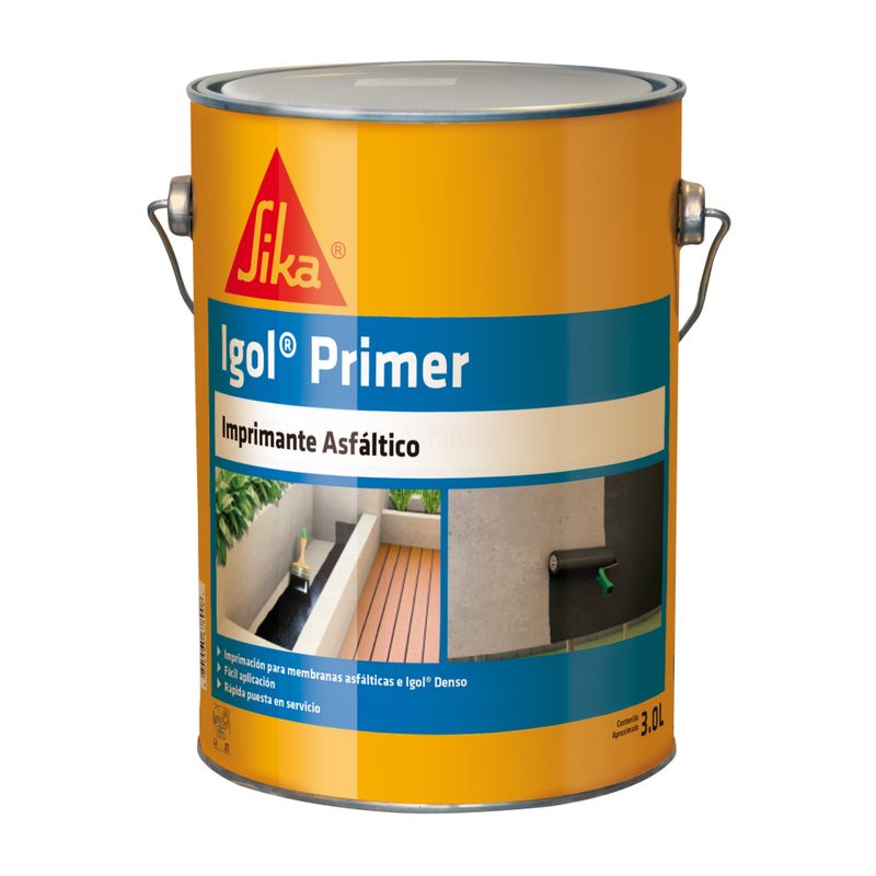 Igol Primer 3 L (Código 463356) es un imprimante asfáltico de alta penetración y excelente adherencia, formulado para preparar superficies antes de la aplicación de impermeabilizantes como Igol Denso o membranas adhesivas. Su consistencia tipo pintura permite una aplicación uniforme, mejorando la adherencia del sistema impermeabilizante en metal, hormigón y revoques.