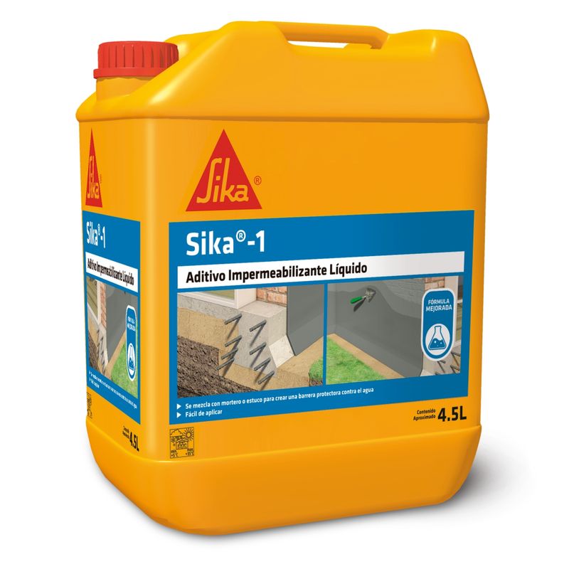 El impermeabilizante Sika-1 Galón (código 463839) es un aditivo líquido de fraguado normal diseñado para mejorar la impermeabilidad de mezclas cementicias, sellando capilares y poros para evitar el paso de agua en estucos y morteros utilizados tanto en interiores como en exteriores.