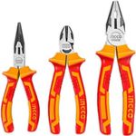 El juego de alicates aislados 1000V Ingco incluye herramientas diseñadas para la seguridad en trabajos eléctricos. Con aislamiento de alta calidad, permite manipular cables y conexiones con total protección. Su diseño ergonómico y materiales resistentes garantizan un uso prolongado y cómodo.