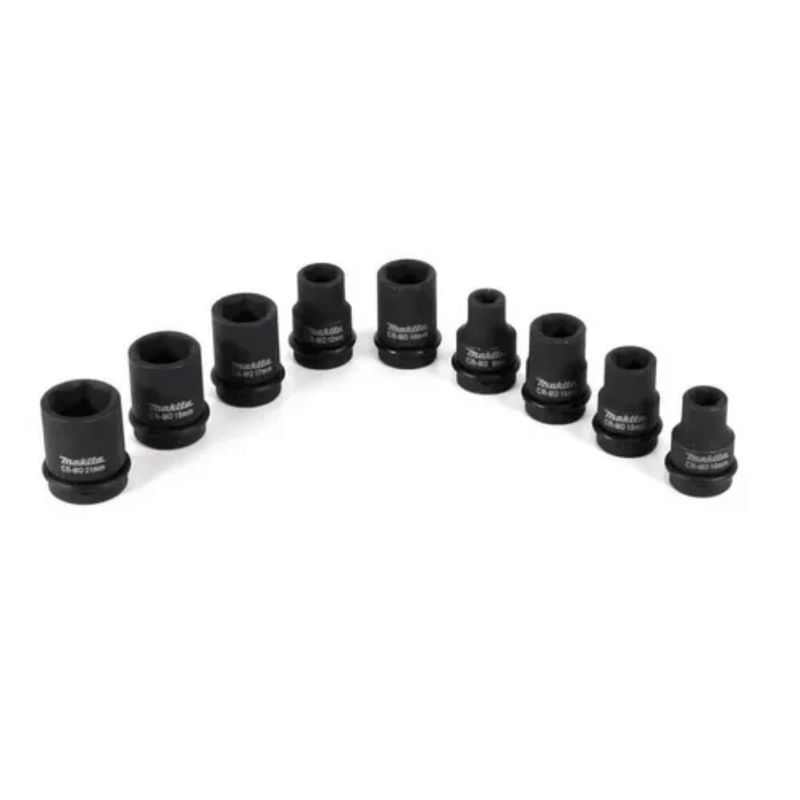 El juego de dados de impacto Makita B-66232 de 1/2" incluye 9 piezas fabricadas en acero de alta resistencia, diseñadas para soportar trabajos exigentes con llaves de impacto. Su acabado fosfatado asegura mayor durabilidad y resistencia al desgaste, mientras que el estuche compacto facilita su transporte y organización.