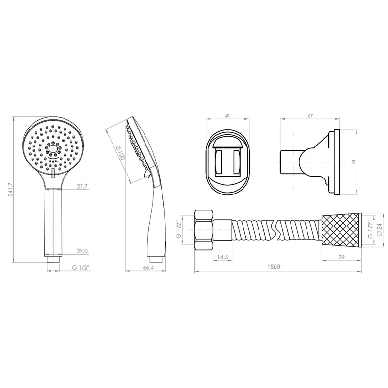 Su diseño práctico con funciones anticalcáreas facilita la limpieza y asegura un flujo de agua constante, siendo una solución eficiente para duchas de uso residencial.