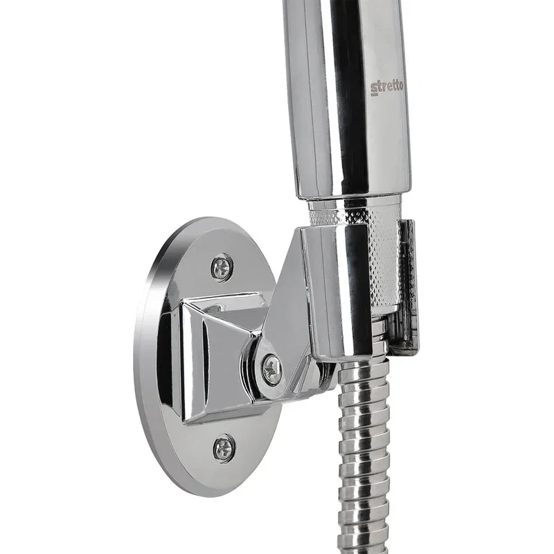 Juego de ducha Stretto modelo Rimini, fabricado en ABS de alta resistencia y diseñado para un uso eficiente y duradero. Incorpora maneral de 1 función con sistema anticalcáreo, ideal para mantener un flujo de agua constante y facilitar la limpieza.