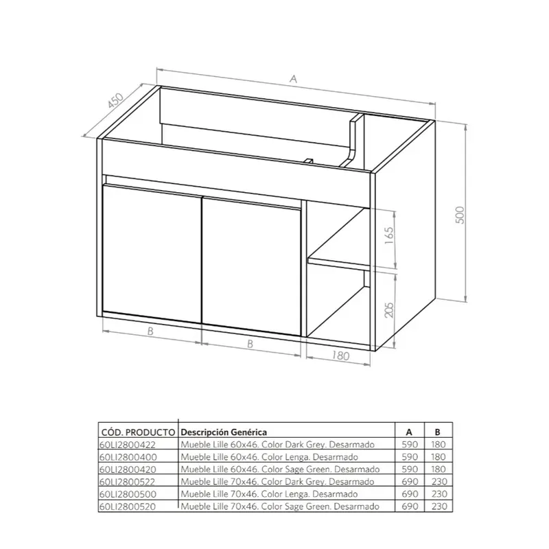 Kit de mueble de baño suspendido con vanitorio de la línea Lille, pensado para baños que requieren mayor capacidad manteniendo un diseño limpio y actual.