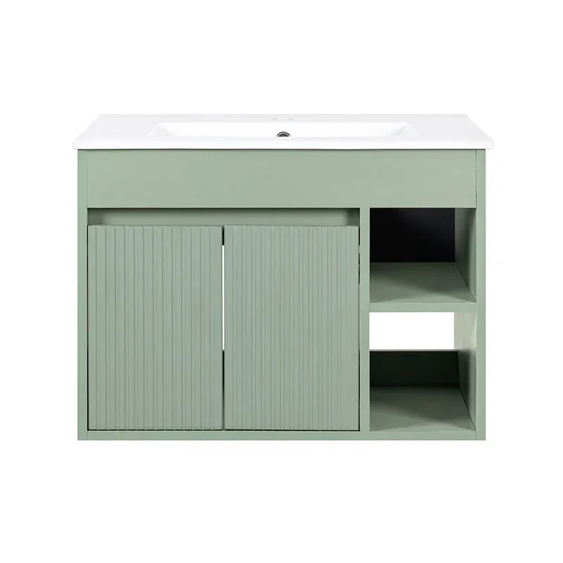 Kit de mueble de baño suspendido con vanitorio de la línea Lille, pensado para baños modernos que buscan funcionalidad y una estética diferenciada mediante superficies texturadas y líneas limpias.