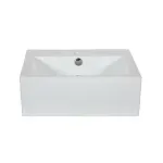 El lavamanos sobreponer Klipen Alfa en acabado blanco está diseñado para instalarse sobre cubierta, ofreciendo una solución compacta y moderna para baños residenciales.