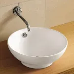 El lavamanos Klipen Omega con rebalse sobre cubierta, redondo en color blanco, es una pieza de loza esmaltada pensada para instalación sobre cubierta en baños residenciales. Su diseño incluye rebalse y una forma redonda que aporta un acabado elegante y funcional al espacio.