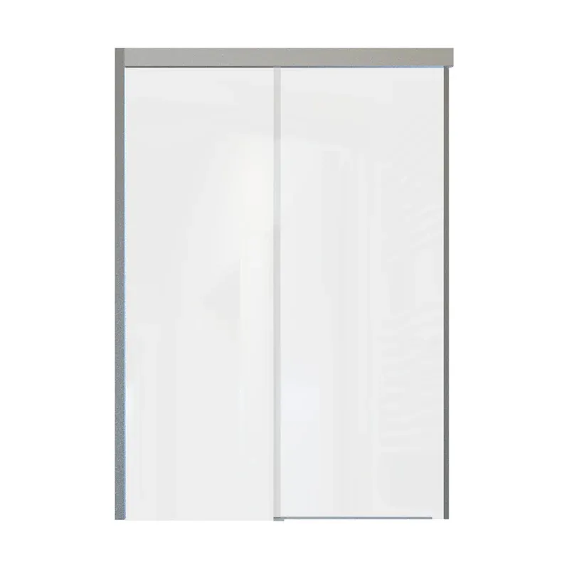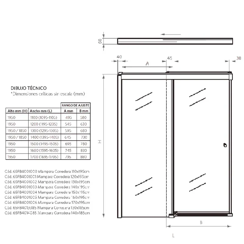 Mampara corredera de 110 x 195 cm fabricada en cristal templado de 8 mm de espesor, diseñada para ofrecer seguridad, funcionalidad y una estética moderna en espacios de ducha.