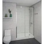 Su sistema corredero con cierre suave y burletes evita salpicaduras, entregando una solución segura y elegante para duchas de uso residencial.